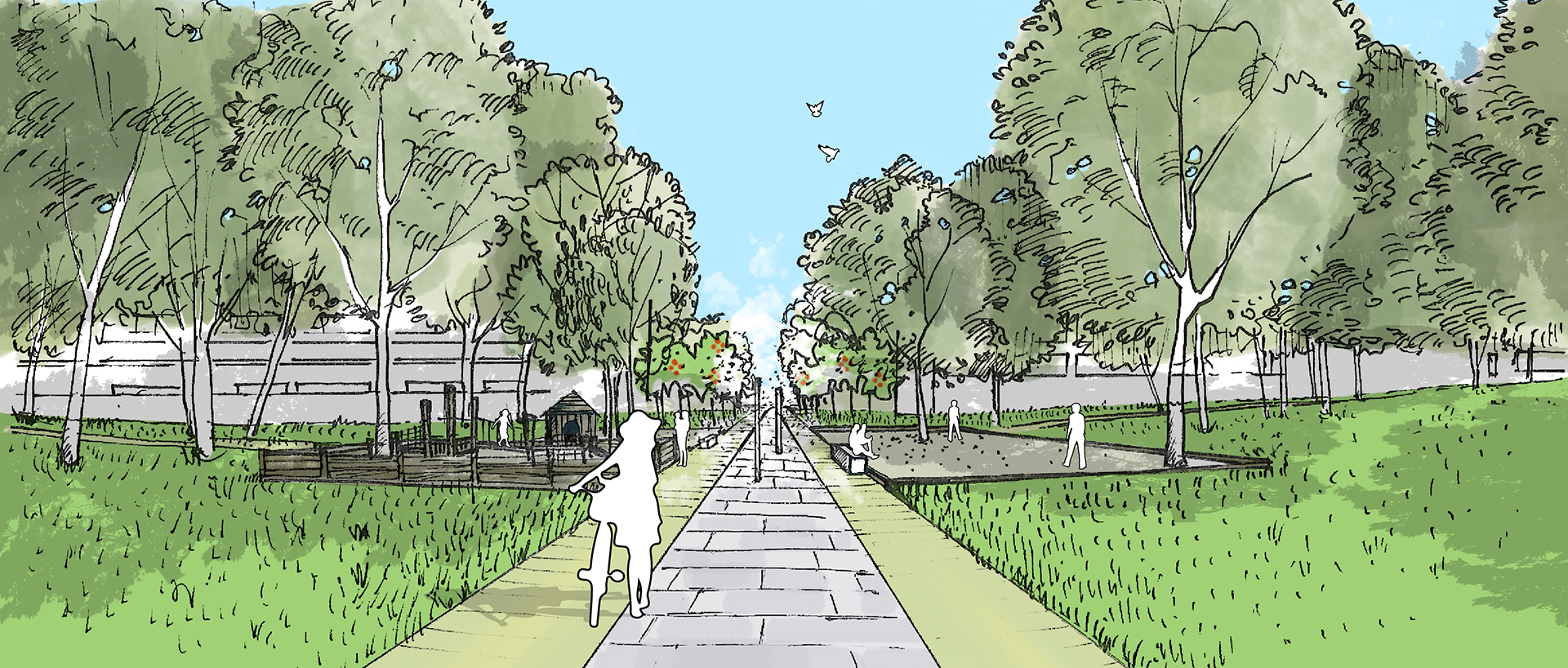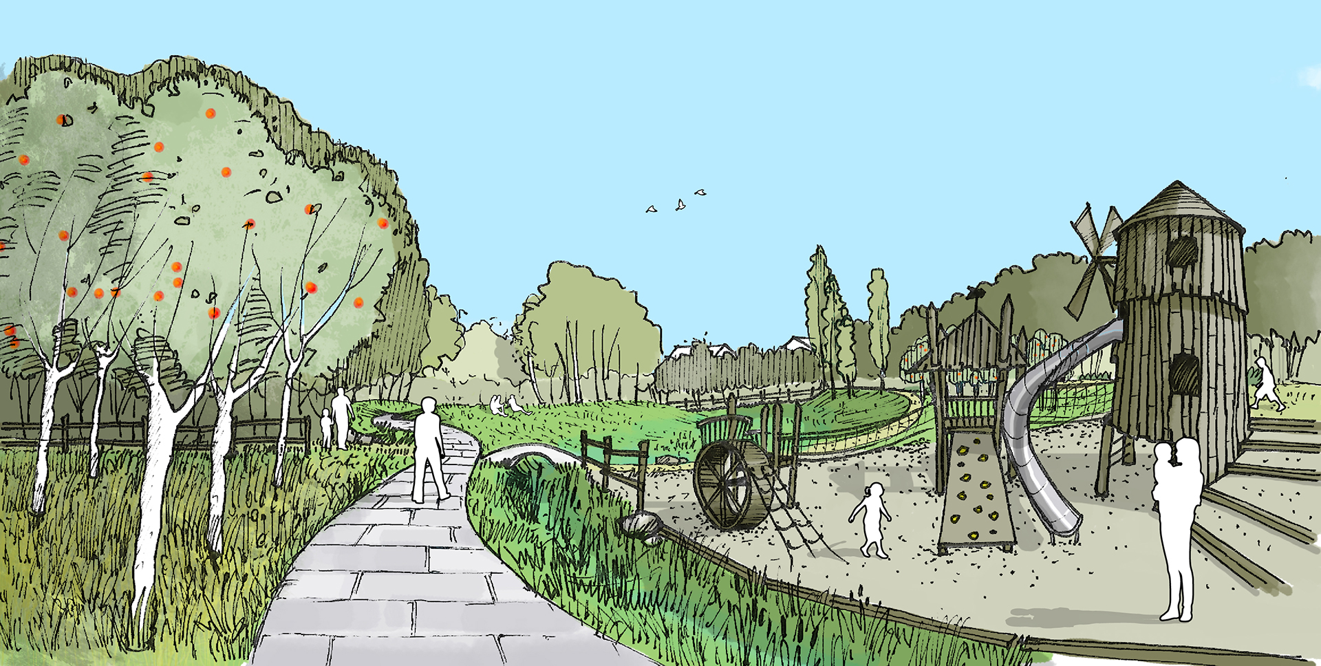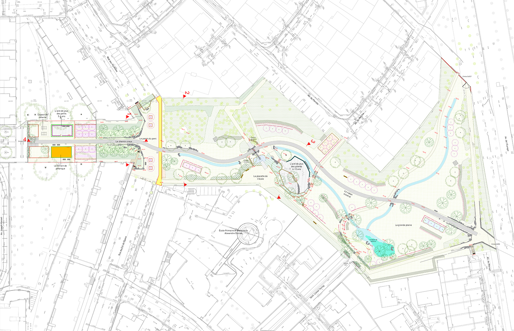 En intégrant les demandes d’un programme tourné vers l’environnement et l’accessibilité, le nouveau parc va offrir un nouveau visage champêtre et ludique. Reprenant les codes d’une campagne idéalisée, en conservant les arbres existants et en travaillant soigneusement la topographie et les points de vue, le nouveau parc offrira des scènes paysagères naturalistes.
